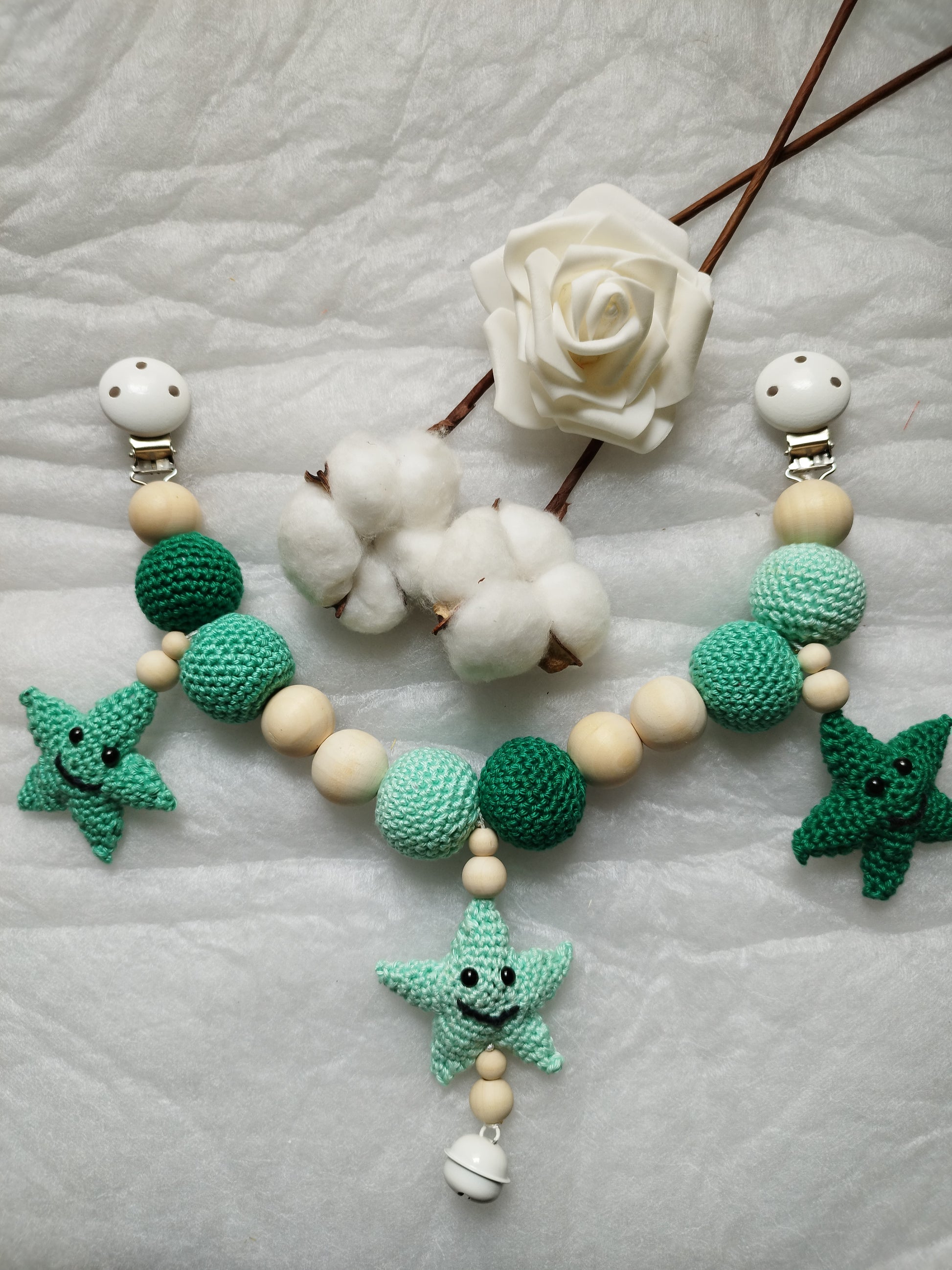 Die Kinderwagenkette kann auf Wunsch auch mit Namen hergestellt werden, allerdings muss ich andere Elemente wegnehmen, damit die Kette nicht zu lang wird. Wahl aus Silikon- oder Holzperlen.