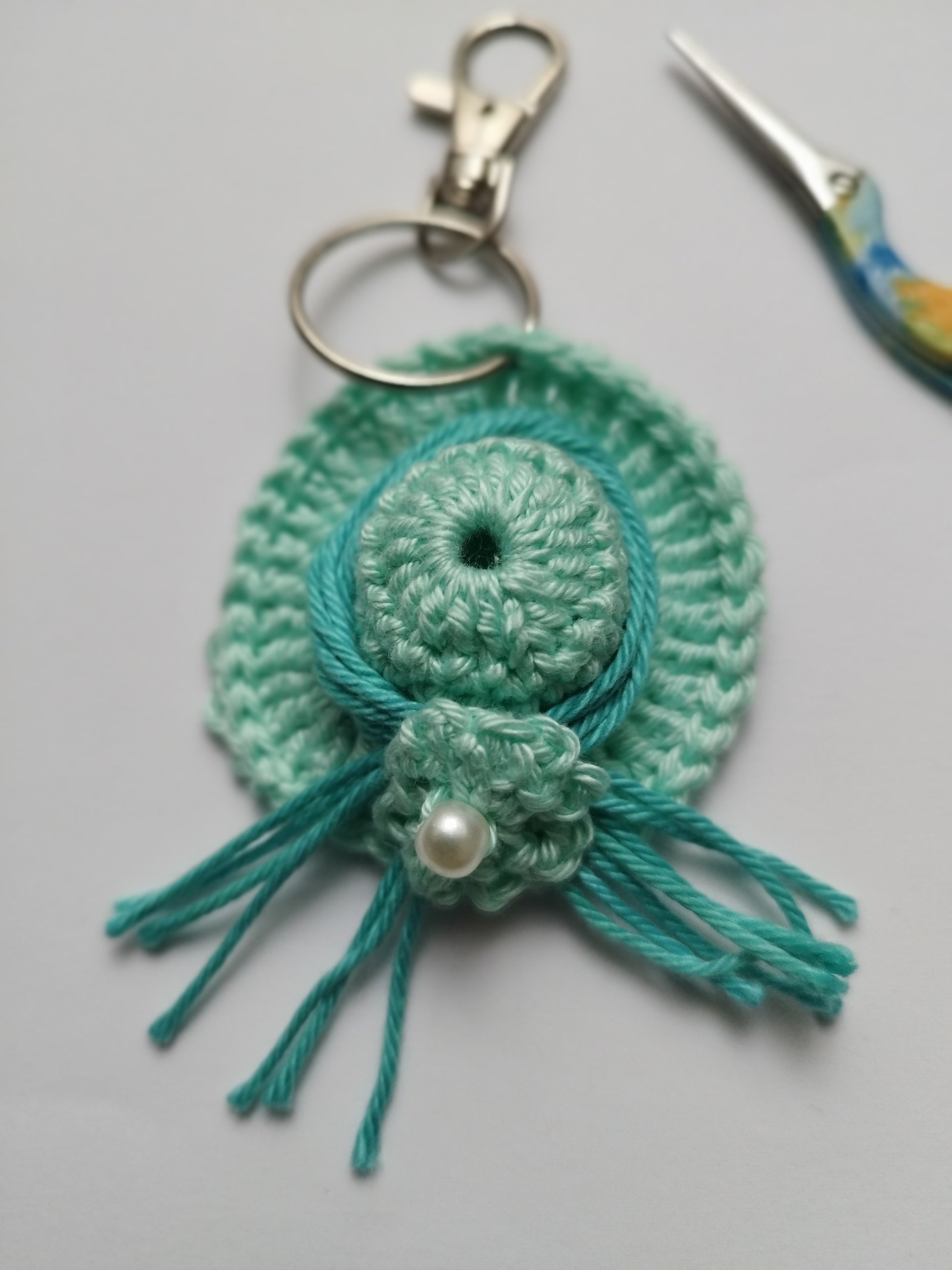 Dieser süße Hut ist ideal als sommerlicher Schlüsselanhänger geeignet.